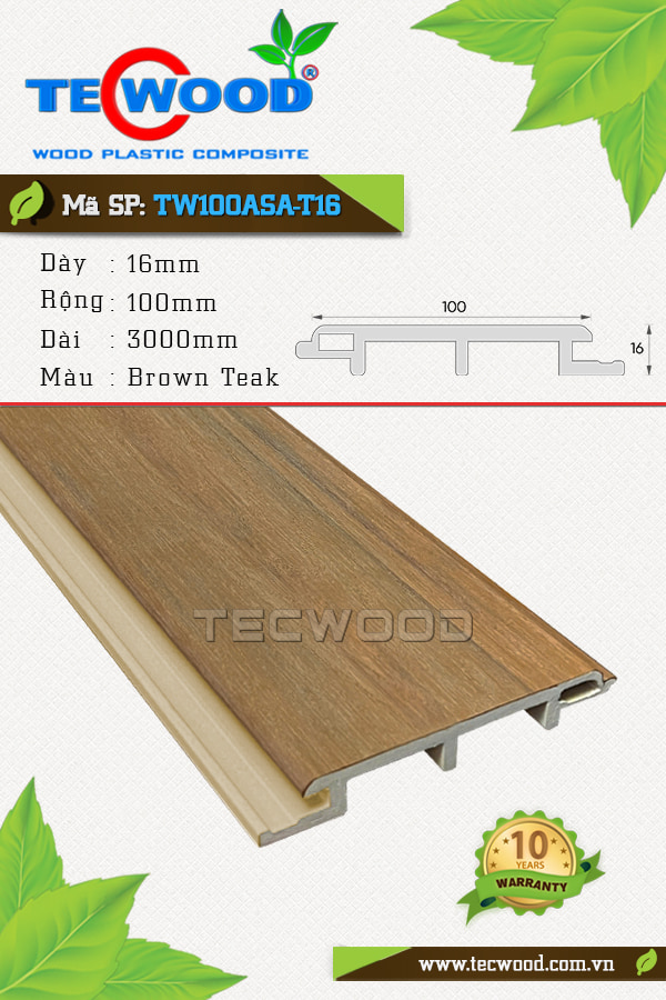 - Tên sản phẩm: Tấm ốp gỗ nhựa ASA TecWood TW100ASA-T16